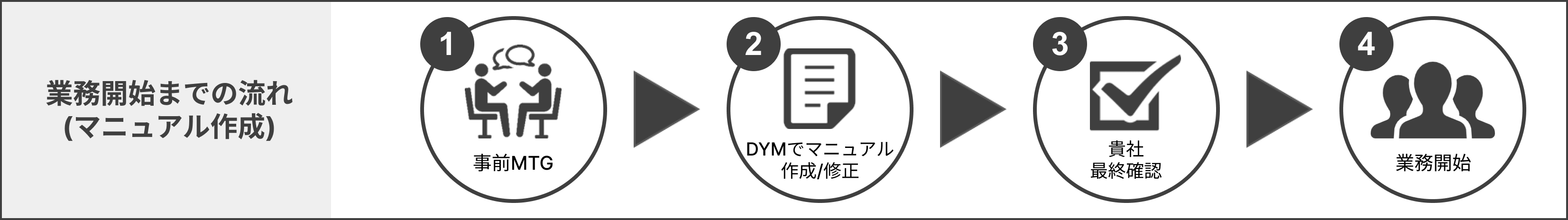 - 業務開始前に詳細なマニュアルを作成し、依頼主に確認していただいてから業務を開始します。これにより、作業内容の認識違いを防ぎ、スムーズな業務運営を実現します。
