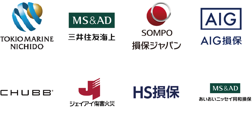 東京海上日動火災、三井住友海上火災、損保ジャパン、AIG Japan、CHUBB、ジェイアイ損保(JI)、H.S損保、あいおいニッセイ同和損保
