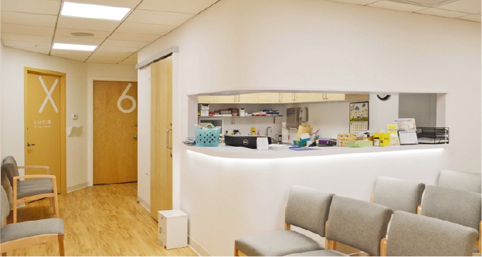 家庭医療科(内科・小児)、心理カウンセリング、足病科を提供。特に家庭医療科では乳幼児から診察が可能で、予防接種や学校健診も行っています。