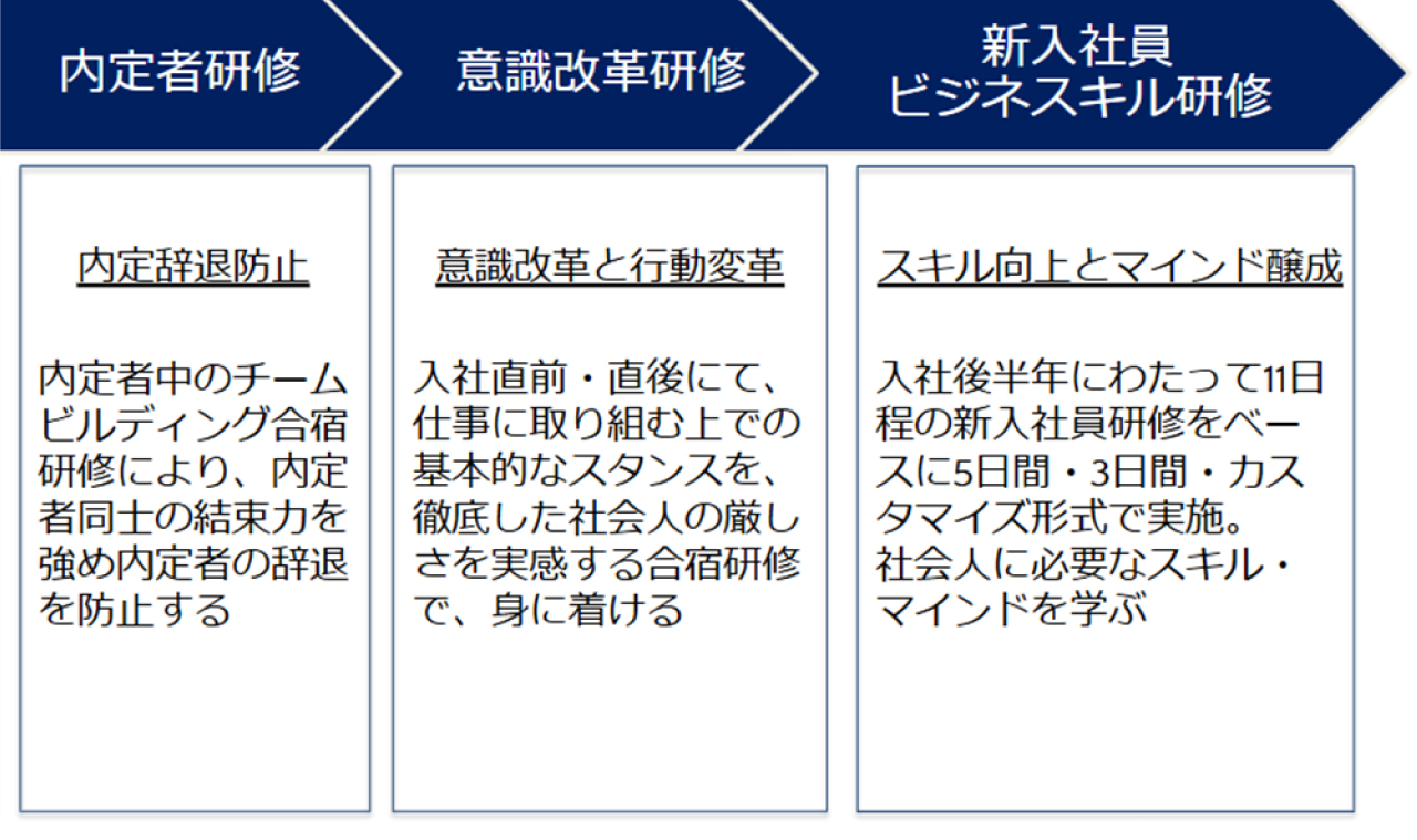 下記プログラムにて、新入社員の「離職低下」 「即戦力化」を実現します。