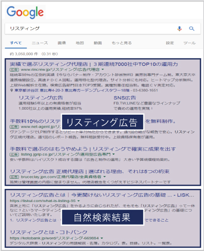 また、自然検索結果よりも上位に掲載されるのでWEBサイトにユーザーを誘導しやすい特徴を持っています。