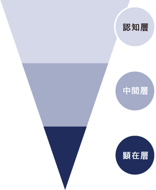 具体化から抽象化、抽象化から具体化を繰り返しながら最適な訴求ポイントへ導きます。業界トレンドの収集と王道戦略